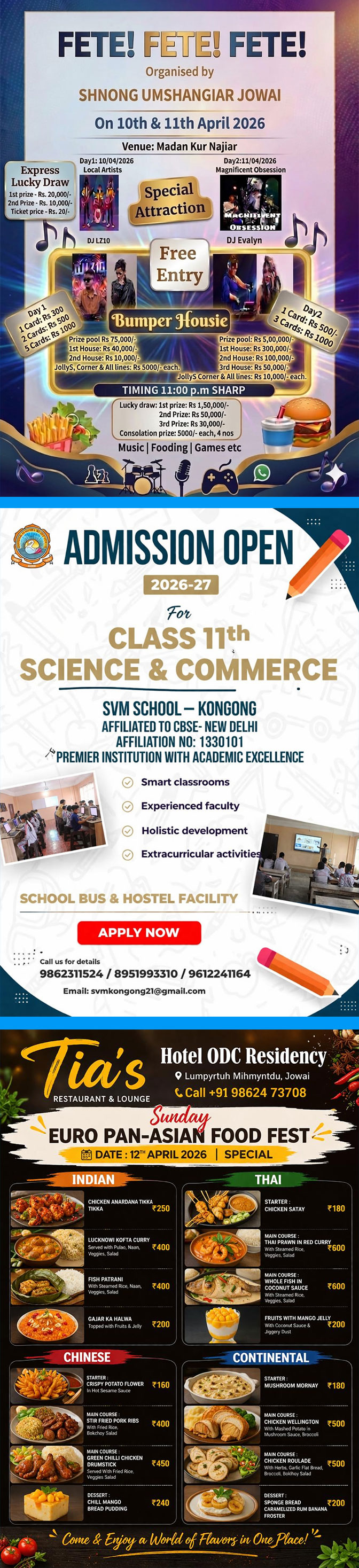 Chwa wow chim ya kani ka rai, ka UPSC da e por ko hadooh ynnin ka 30 tarik ya ka Puja wow pynche ko wei wow pynbiang ya ki kot ki sla tangwa ym em wan ko.
