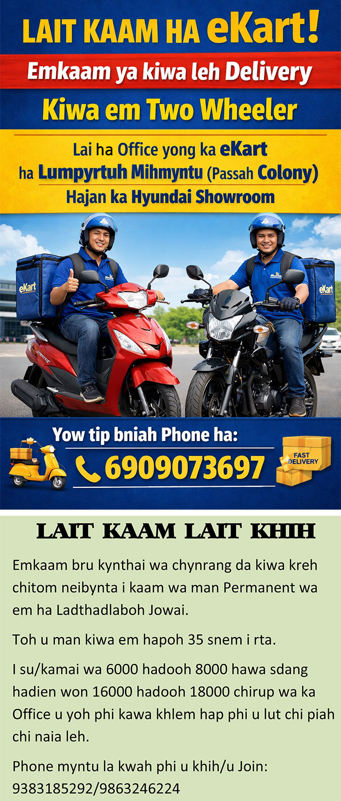 Wahiajer: Uwi u khnynnah khynroo uwa dang 22 snem i rta wa lai puræ 3rd Year B.A. ha Kiang Nangbah Government College uwa tip pyrtuit kam u Hunbait Dhar uwa na ka chnong Wahiajer West Jaintia Hills District da dooh u ia i jingim u hadien wa ngam um u. Ini da jia i ha ka wah Myntang ha i bynta ka chnong Mukhla Cohchrieh.
