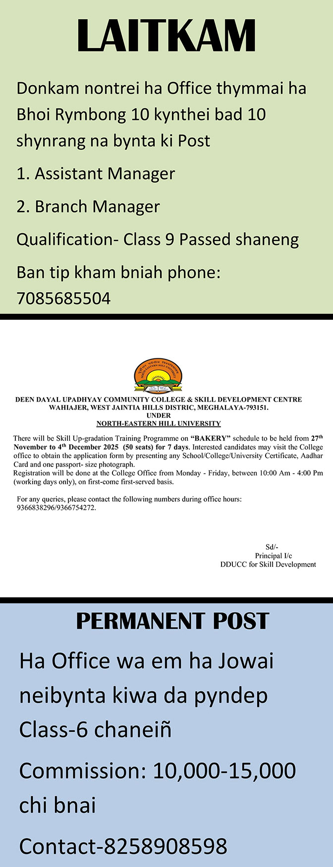 Khang ka sorkar wow kamai kari hapoh ka jylla Meghalaya