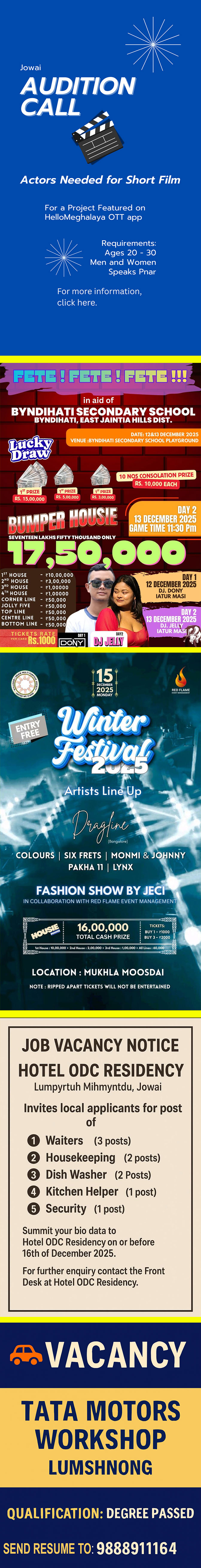 Shillong: Hadien wa da leh yeiwa emkaam kam ki Contact Tracing wa ki Test wei hadien wa da yoh ya ka bui, ka District Magistrate, East Khasi Hills District da pyndam ko ya ka Containment Area ha B. Dohling compound, Mawkhar Main Road, i yung ka B. Dkhar, Amjad Ali Road, Laban, i yung ka Sushma Talukdar, Burnside Area, hajan Sankardev College Girls Hostel, Rilbong wa ka Mantra Building wa em mar pyrchah ya ka Puja Mandap, Rilbong.