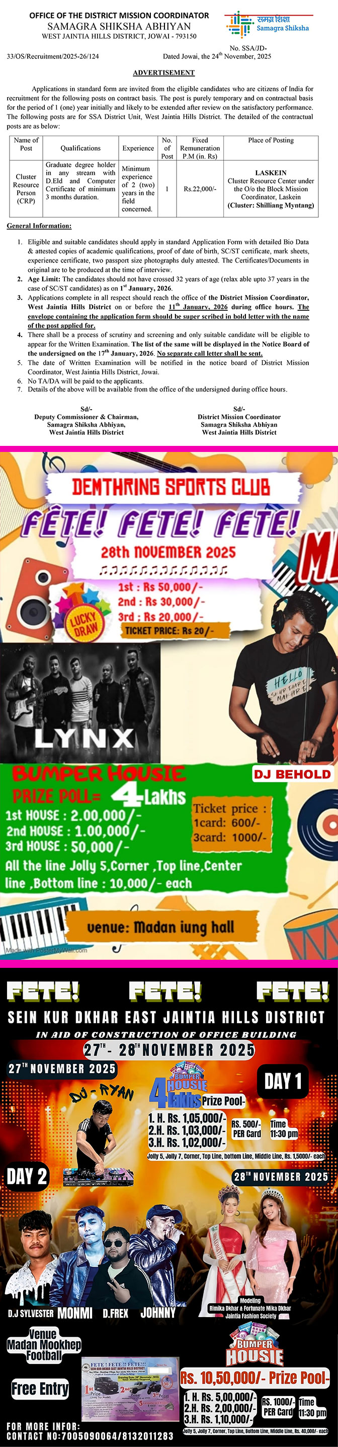 Hawa klam ynne ka sngi, u Sniawbhalang da ong u wa ka Lapangap ymtoh ka thaw wa em i ya kajia pood wa ka Assam, wei hawa mih ka huri hura kamwa da jia ini wa dep, ka sorkar hap ko wow chimkhia yow pynbait.