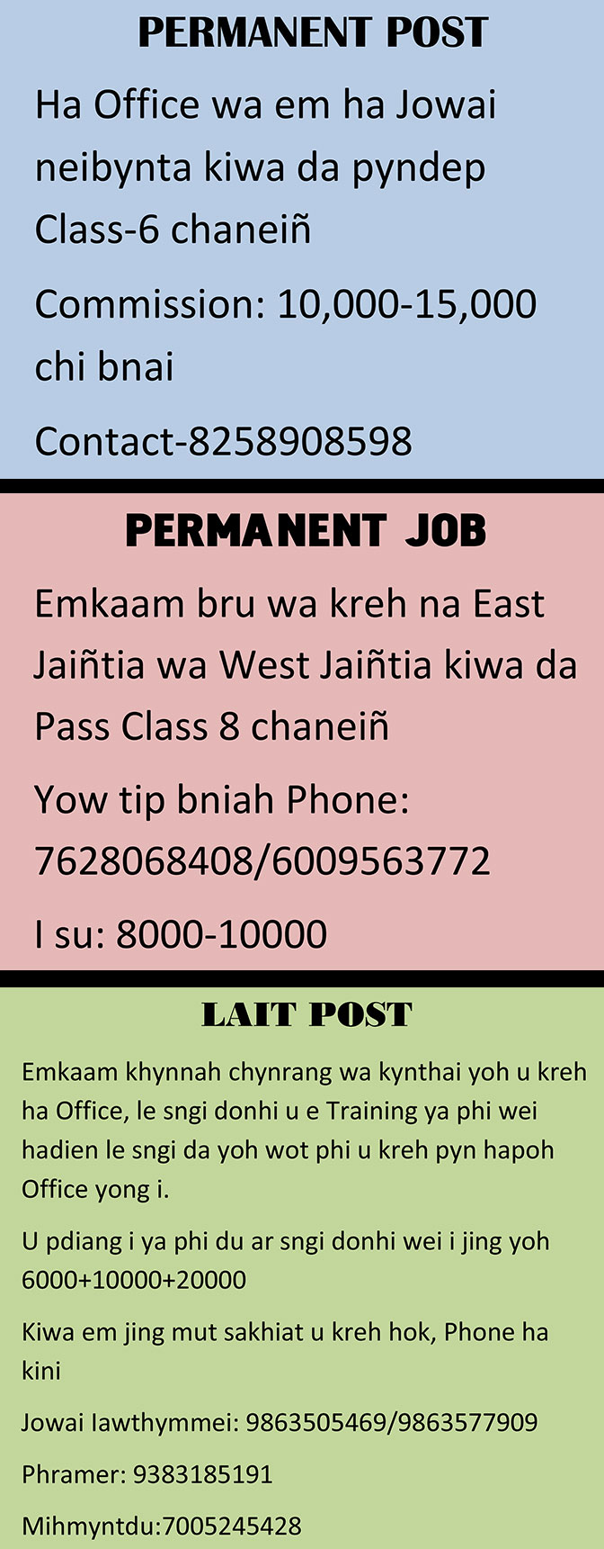 Jowai: Ka All Sohkha Development Committee, haka 4 tarik u Kmaichonglad (Dec) daw e khusnam ko yaki khynroo khyllood wa leh bha hei puræ puthi deiwa poi cha ka kyrdan 1st Division yong ka kyrdan Secondary waka Higher Secondary Level neibynta u snem 2018 hadooh u 2020 ha yung skur ka Sohkha Govt. Higher Secondary School Sohkha nadooh i por 11 waje i step.