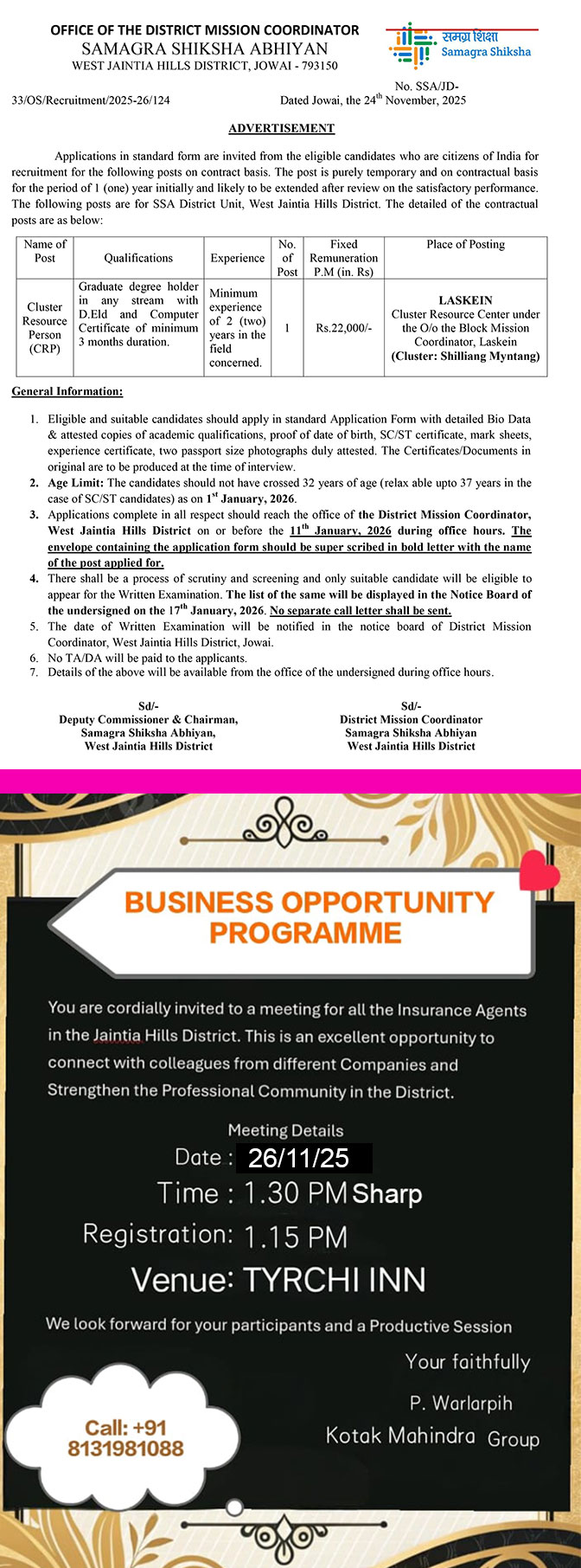Kamtæ ki yakhun Quarter Final u sdang ki ha kani ka 3 tarik da ar tylli heiwa ka Lion Sports & Youth Affairs daw yachem ko waka Khliehiongriang heipor 2:00 waje i sngi wei daw pynbood da ka NSA waka Mookyndur heipor 4:00 waje noh chariñ ka sngi.