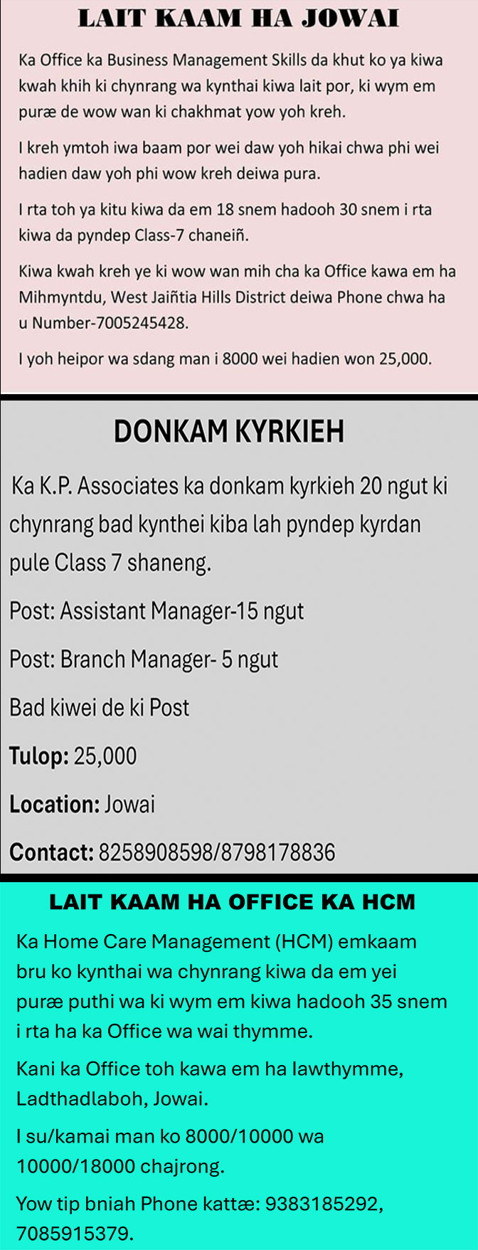 Hawa booddien yeini, ki pulit da yoh ki wow kem sa 4,000 tylli ki Yaba Tablet wa khia 398 gms na u Labius Arengh uwa man u kong u Salnang M. Sangma.