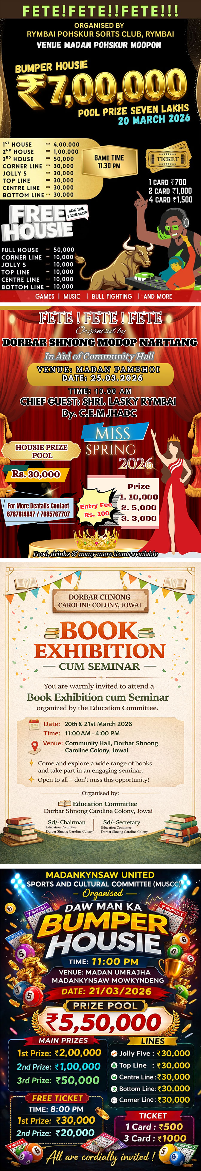 Kam wow pynkynmoo wa da em 32 tylli ki dhab wa wan ya chimbynta ha kani ka Tournament wei kiwa jop ya ka Final u yoh rah ki yaka song pisa wa T. 2 lak katwa kiwa rem u yoh ki T. 1 lak.