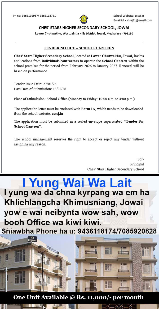 Ya i metyap yong ka da pynthiah ha yung sah yong ka wei ka lehniam wa khaddooh u pyndep ha ka 12 tarik heipor 2:00 waje i sngi ha Loom Tlep-bru ka Balang Presbyterian Jowai.
