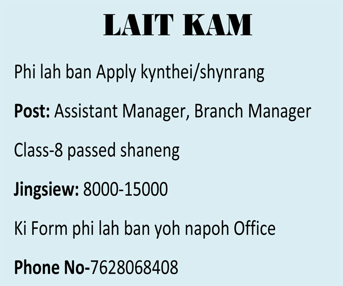 Kamtæ da khut ya waroh ki tre paar mooyong wow wan cha kani ka yalang ka wow pynman haka 17-02-20 nadooh 11 waje i step ha Khliehriat West Committee Hall.