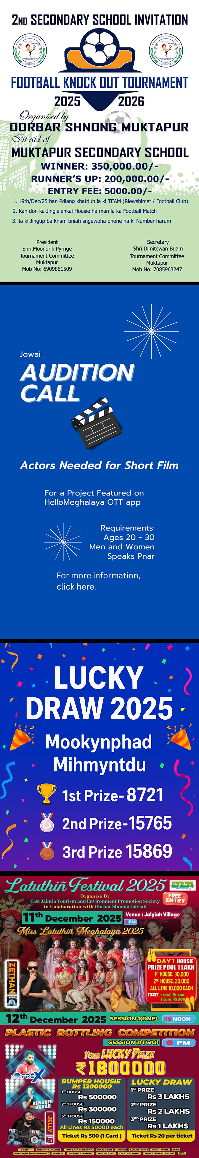 Ka Ri-Bhoi da jop ko yaka East Garo Hills da 87 Run haka yalehke wa da pynthut da u slap haka Inter District U-19 Girls Cricket Tournament wa pynman daka Meghalaya Cricket Association ynne ka sngi ha Nongstoin.