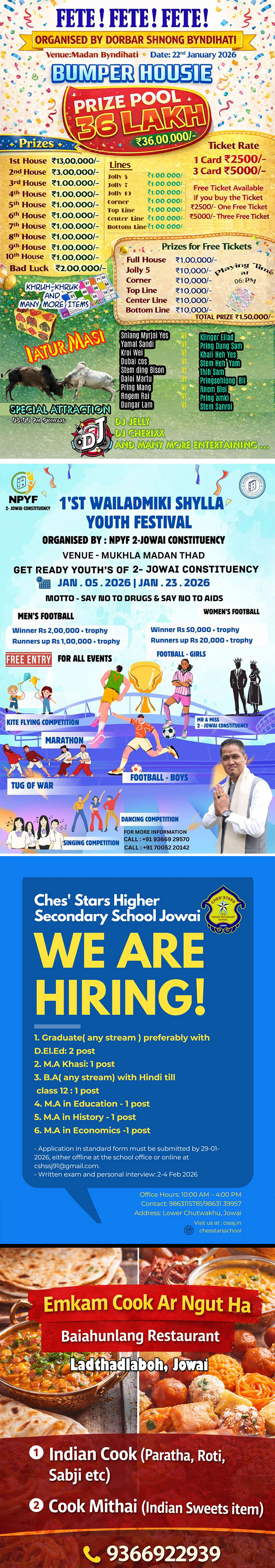 Neiliang ka chnong da e khublei ko leh ya waroh kiwa thied ya ki Ticket kamjooh kiwa da wan wow pynchit ya ka Fete.