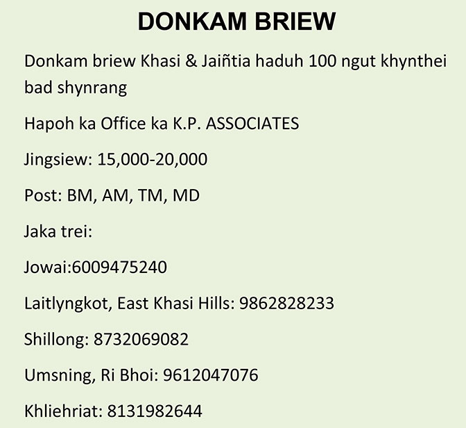 Neiliang ka Dorbar Chnong e khublei kyrpang ko ya kiwa yarap wow pynyoh ya kini ki kymmor kiwa em yei mynsien sbun wow ya ksohkti lang wa ka Dorbar Chnong deiwa ong wa e wa u Blai u kyrkhu kyrdoh u ya waroh kiwa pynman ya kani ka sngi kawa jop.