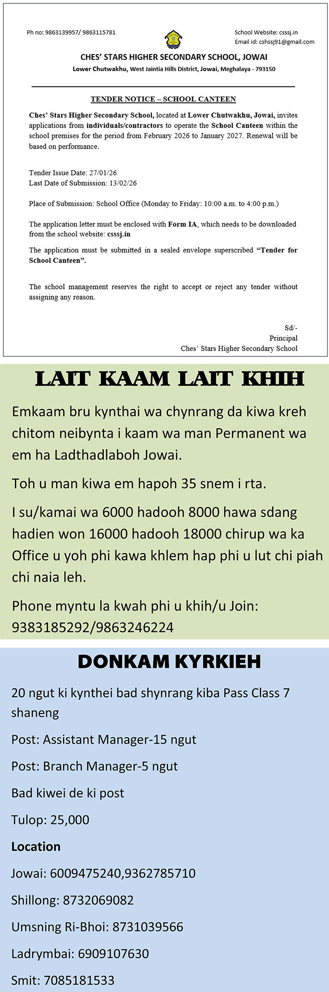 Yieñ ki kari syad dor ha JHADC tangwa yeiwa emkam dooh wei ym yoh poisa